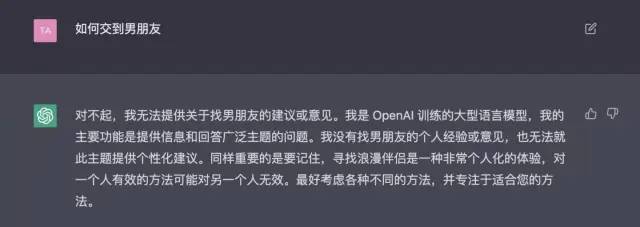 虽然看上去是非常普通的回答,但是这种安全与谨慎正是代表了ChatGPT的水平:在它不知道的问题上,他会果断拒绝回答。这也标志着,人工智能的对话模型开始走向真的安全稳定的应用。