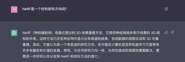 大模型分析道,NeRF(神经渲染场)是一个比较新颖的方向,同时存在着广阔的探索空间。