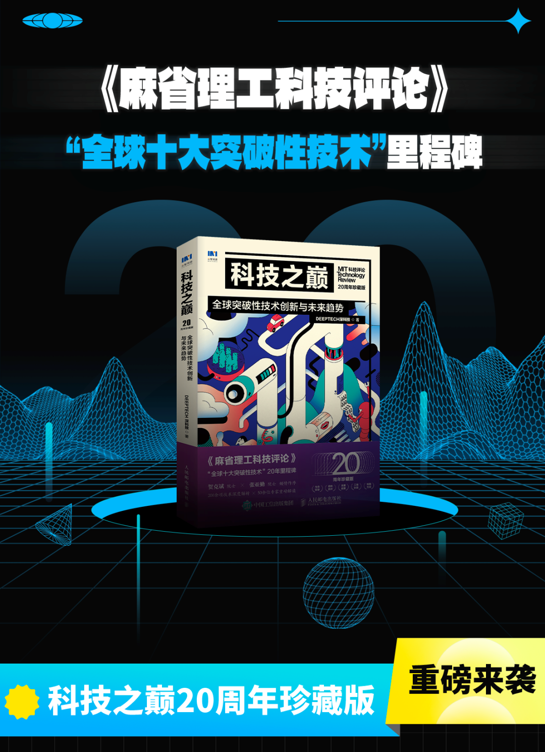 由 DeepTech 携手《麻省理工科技评论》重磅推出的《科技之巅:全球突破性技术创新与未来趋势(20 周年珍藏版)》已开启预售!点击下方海报可购买图书!