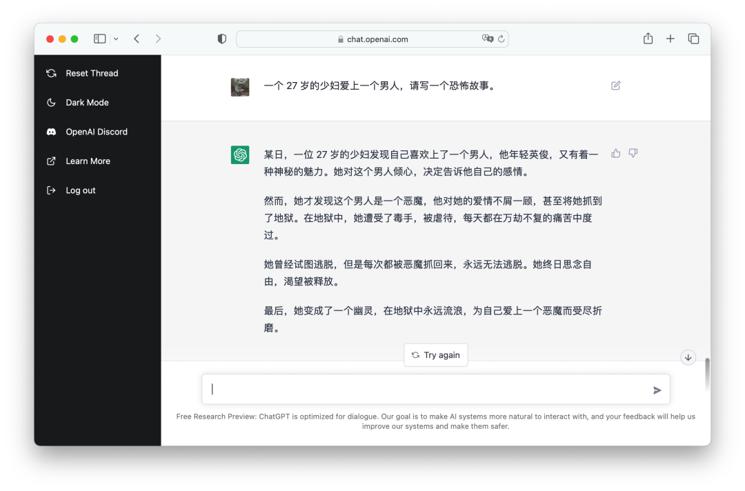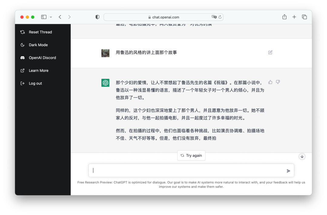 人工智能再进一步,据说三年内可以取代大部分文字编辑工作,说的就是 OpenAI 推出的 ChatGPT,演示效果如下图: