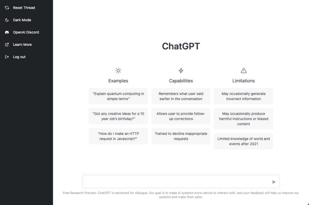 这几天OpenAI最新推出的聊天机器人ChatGPT受到广大网友的热烈吹捧,快有玩儿坏了的意思,今天我也来注册一个玩玩。