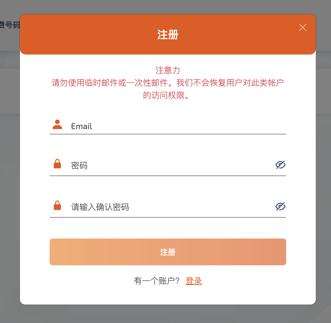 打开网站后也是得先注册,这个注册很简单,根据提示注册