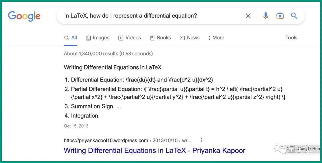 有网友分别问谷歌和ChatGPT“如何使用Latex表示微分结果”,相较于谷歌中规中矩的回答: