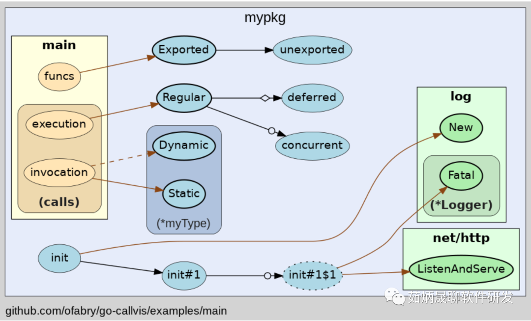 通过检索我们首先找到了 go-callvis ,它能提供代码静态扫描并通过graphviz绘制一个如下所示的可视化页面