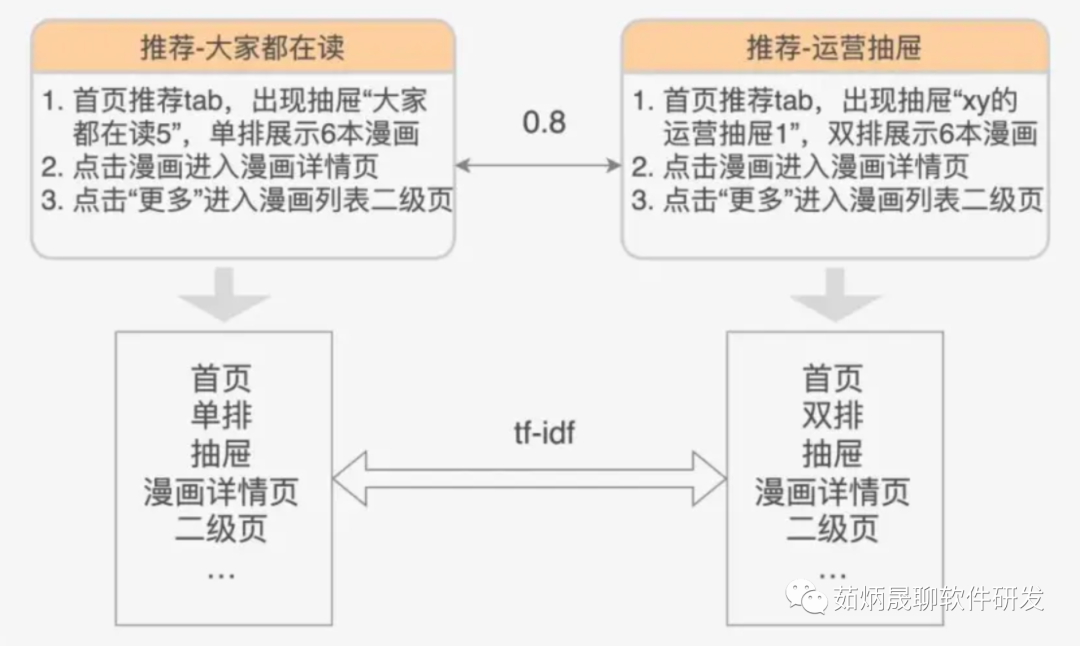 我们尝试过通过文本相似度加权来计算用例与用例间的相似性,此方案对测试人员编写用例有较高的要求,如果有不同的测试人员去测试相同模块,因为书写习惯不一样,会导致case计算结果不准确。即便做了业务划分,每个同学负责不同的业务,不同版本下同一个同学写的用例可能也存在差异,所以最终弃用了此方案。
