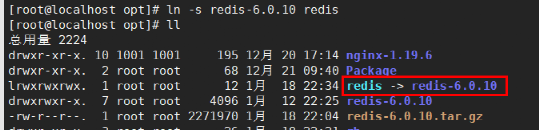ln -s redis-6.0.10 redis