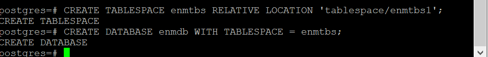 CREATE TABLESPACE enmtbs RELATIVE LOCATION 'tablespace/enmtbs1';