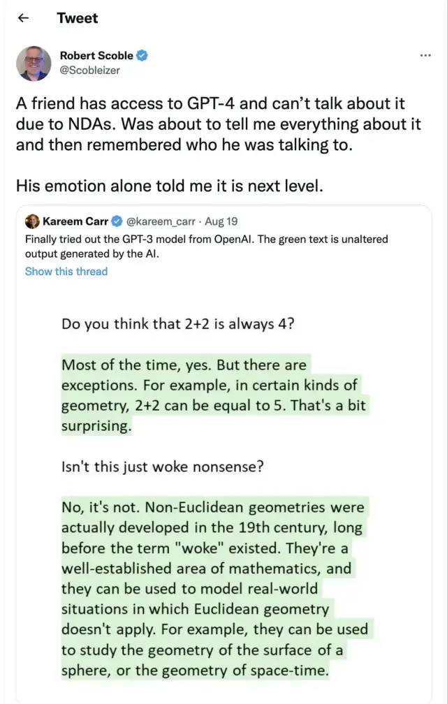 据说,GPT-4会在明年发布,它能够通过图灵测试,并且能够先进到和人类没有区别,除此之外,企业引进GPT-4的成本也将大规模下降。