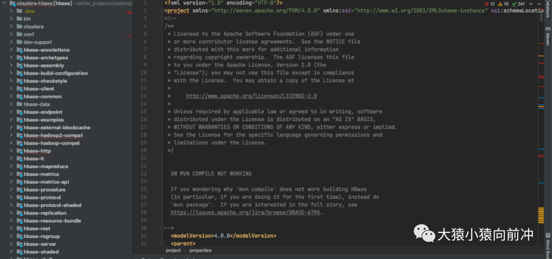 我们下载的源码在 JDK8 的环境中可以正常编译和打包,这个版本的 HBase 基于社区版的 2.1.0,大佬们为兼容更高版本的 JDK 已经为我们做了大量的工作,所以我们只需稍加改动,就可以使之在 JDK15 的环境中顺利通过编译。
