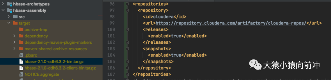 模块的 target 目录中找到hbase-2.1.0-cdh6.3.2-bin.tar.gz