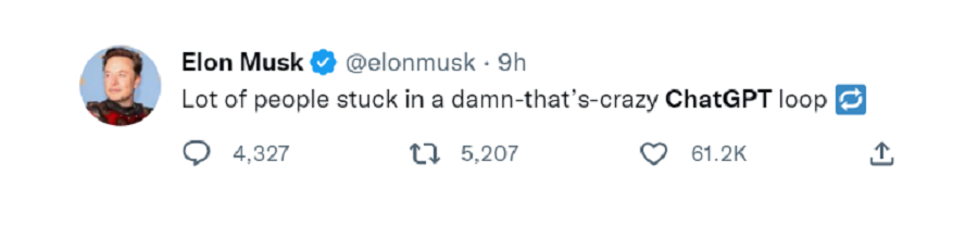 看到这,你是不是也想尝试一番。不错,这个模型一经发布,让很多人沉迷而无法自拔,就连马斯克都来了一句:「很多人陷入了该死疯狂的 ChatGPT 循环中。」