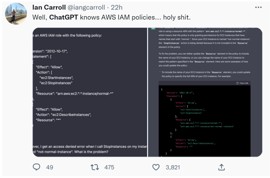 更有网友不可思议道:「天呐,ChatGPT 竟然知道 AWS IAM 策略。」