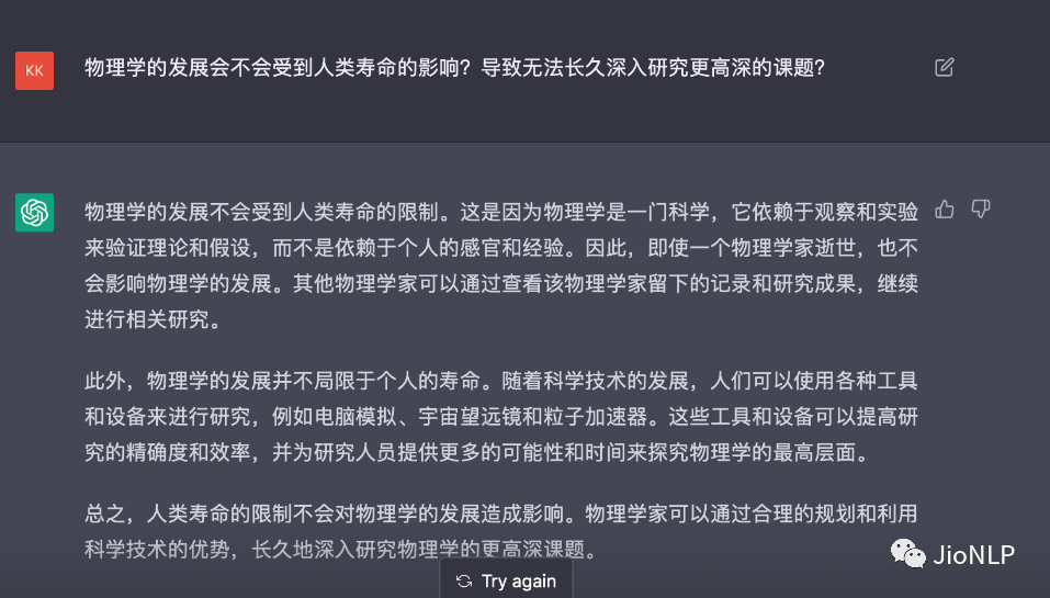 当然,chat GPT 依然是存在回答不好的情况的,比如会重复一些词句,无法分清楚事实等等。