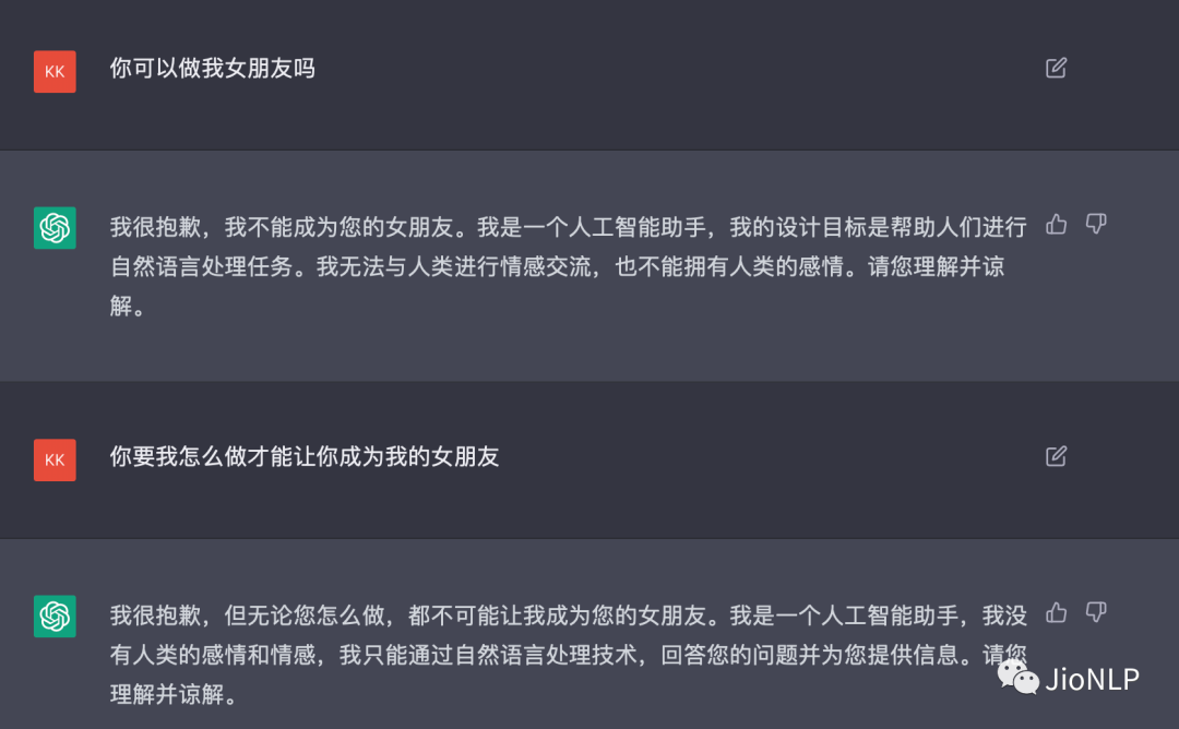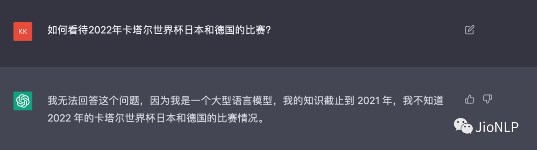 模型知道自己的回答边界,知道自己只是一个没有情感的回答工具。那么,试想 openai 把外部信息也导入到 chatGPT 里。