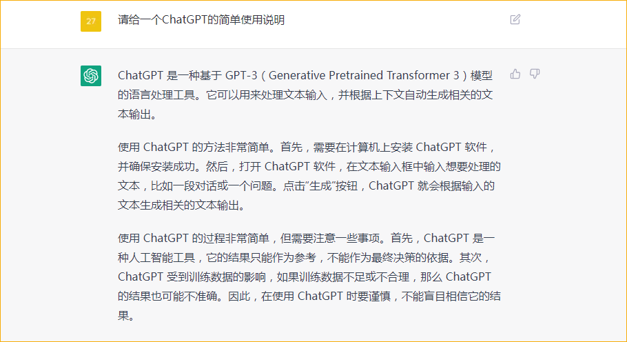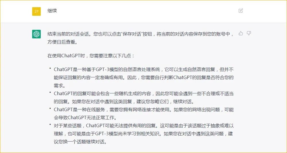使用 ChatGPT 的过程非常简单,但需要注意一些事项。首先,ChatGPT 是一种人工智能工具,它的结果只能作为参考,不能作为最终决策的依据,其次,ChatGPT 受到训练数据的影响,如果训练数据不足或不合理,那么 ChatGPT的结果也可能不准确。因此,在使用 ChatGPT 时要谨慎,不能盲目相信它的结果。