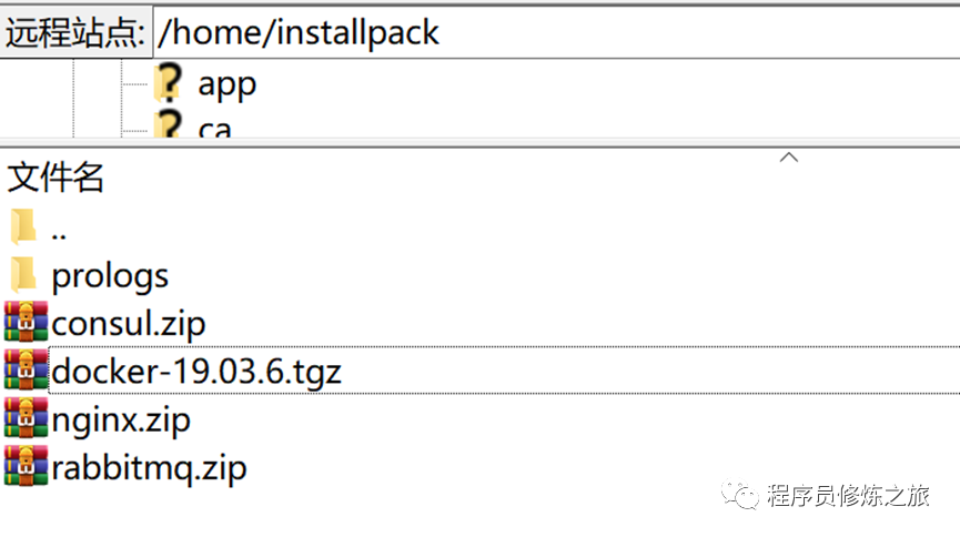 将上一步骤准备好的docker安装包上传到离线服务器,我习惯上传到目录:/home/installpack,具体目录木有什么要求,根据自己爱好来操作。