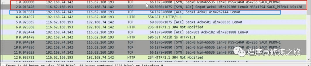 首先我们安装 Wireshark 软件,并对 Nginx 所在 IP 和端口进行抓包,然后访问页面,在 TCP 层主要说两件事情: