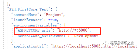 环境变量:也就是通过launchSettings.json的如下节点来配置程序端口