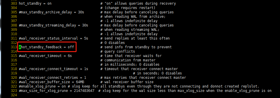 将hot_standby_feedback=off的注释去掉,同时将hot_standby_feedback=off改为hot_standby_feedback=on。