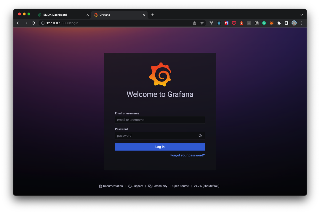 在完成了使用 Prometheus 采集 EMQX 数据指标的配置后,我们就可以使用 Grafana 来可视化监控 EMQX 的指标数据了。