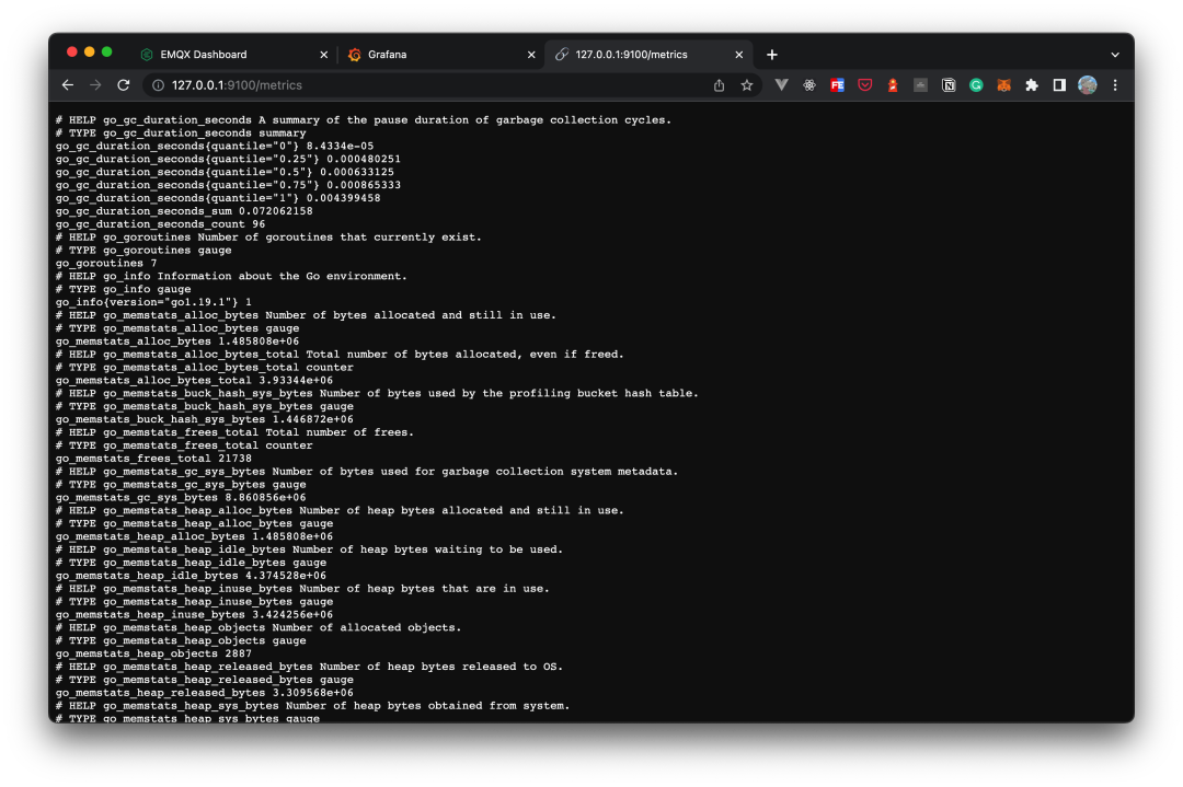EMQX 5.0 提供了一个获取 Prometheus 格式监控数据的 HTTP API -- /api/v5/prometheus/stats