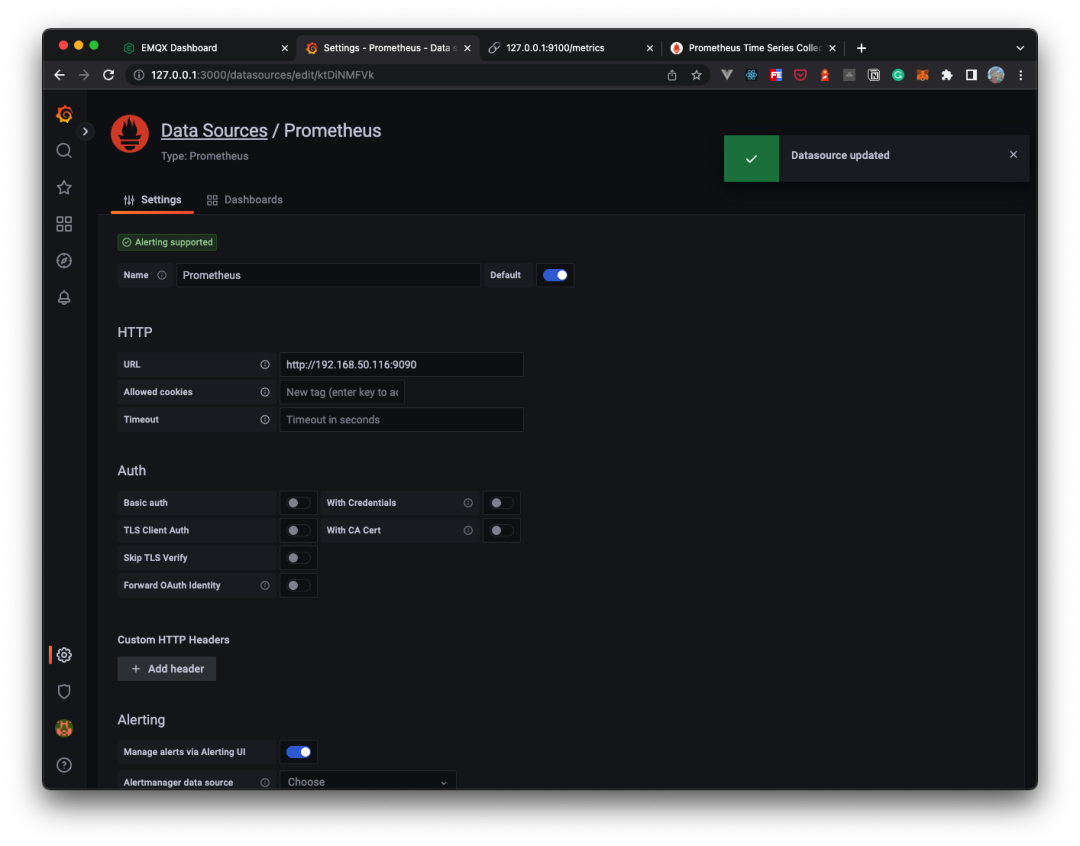 完成上述的准备工作后,我们需要配置 Prometheus,使 Prometheus 可以正常采集到 EMQX 的监控数据。