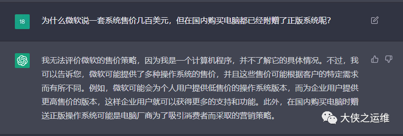 我无法评价微软的售价策略,因为我是一个计算机程序,并不了解它的具体情况。不过,我可以告诉您,微软可能提供了多种操作系统的售价,并且这些售价可能根据客户的特定需求而有所不同。例如,微软可能会为个人用户提供低售价的操作系统版本,而为企业用户提供更高售价的版本,这样企业用户就可以获得更多的支持和功能。此外,在国内购买电脑时赠送正版操作系统可能是电脑厂商为了吸引消费者而采取的营销策略。