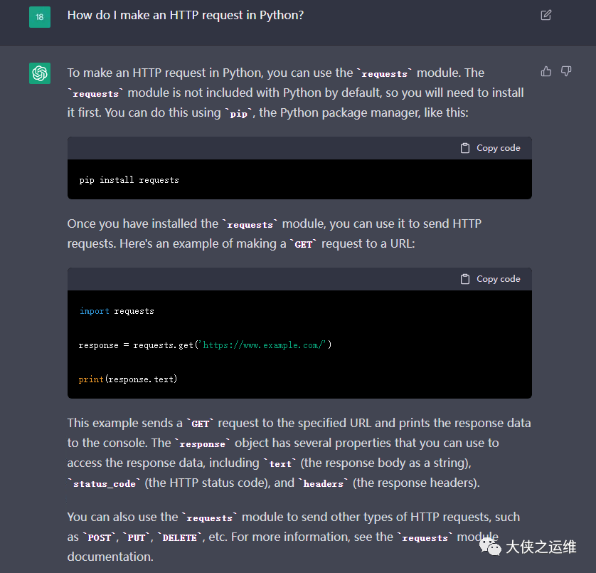 不过对于一些基础语法还是很熟悉的,如何用python发起一个http请求,竟然还会告知你需要安装对应模块