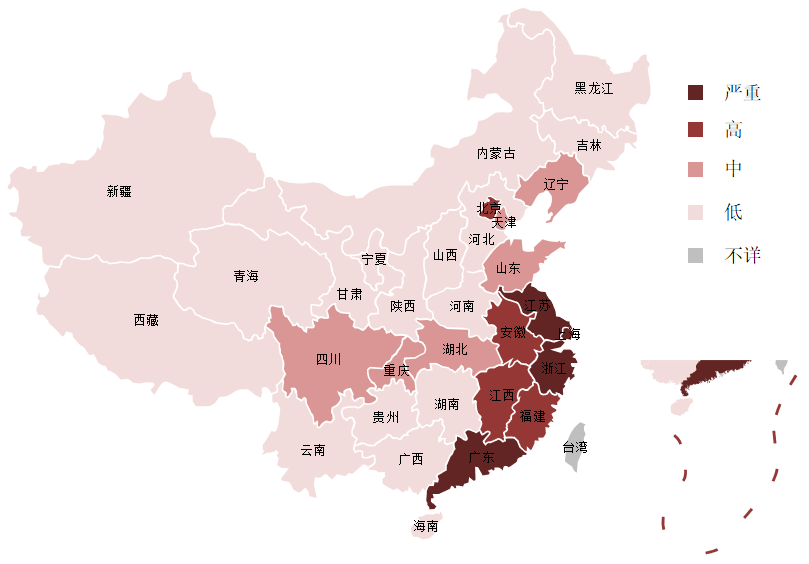 美创安全实验室威胁平台显示,11月份国内遭受勒索病毒的攻击中,江苏、上海、浙江、广东、北京最为严重,其它地区也遭受到不同程度的攻击。