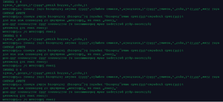 insert into products2 values (1502,'olympus camera','electrncs'),(1601,'lamaze','toys'),(1700,'wait interface','Books'),(1666,'harry potter','toys');