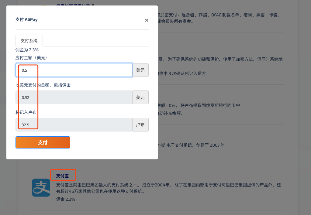 目前建议使用支付宝充$0.5 = 32₽(卢布)已经够用