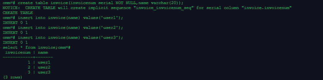 create table invoice(invoicenum serial NOT NULL,name varchar(20));