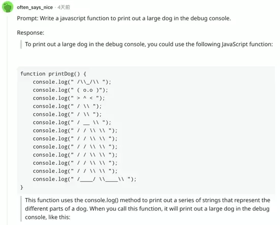 写代码、写PR文案、设计游戏剧情、起草法律文件……最近,OpenAI推出的新一代对话式语言模型ChatGPT,在AIGC(人工智能生成内容)领域引起了轰动,海内外用户争相探索ChatGPT的应用场景(找乐子),各种令人惊艳的对话结果在社交平台上持续刷屏。当用户提问“打印出一只大狗”,ChatGPT就直接生成了一整段程序,该程序能用字符拼接成狗的形状。这看起来类似于编程问答工具Stack Overflow,只不过回答问题的是个AI,而且它能根据用户的需求找出bug,并修复bug。即刻用户“张杰伊”分享了一些ChatGPT在科技行业的应用案例,他说ChatGPT将编程工作变成了:写提示->ChatGPT生成代码->运行代码->把报错信息粘贴给ChatGPT->ChatGPT改bug->程序运行成功。有媒体称这下AI要让程序员“下岗”了,还有人担心文字工作者可能也会被取代了。ChatGPT究竟有多厉害?AI真的可以代替我们写稿了吗?新榜编辑部体验了一把ChatGPT(https://chat.openai.com/),并结合近些年AI写作产品的发展进行分析,欢迎留言一起讨论。