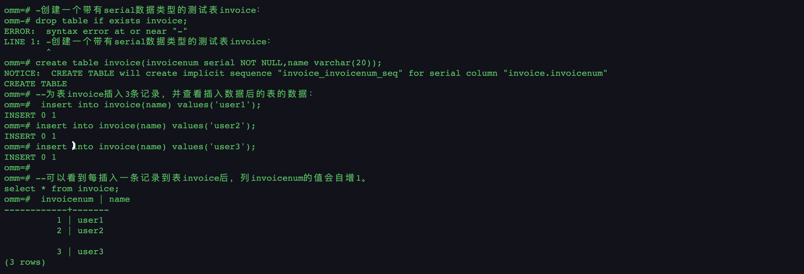 商品发piao的编号通常按顺序递增。这种情况可以使用serial数据类型。最简单方法直接使用serial数据类型。