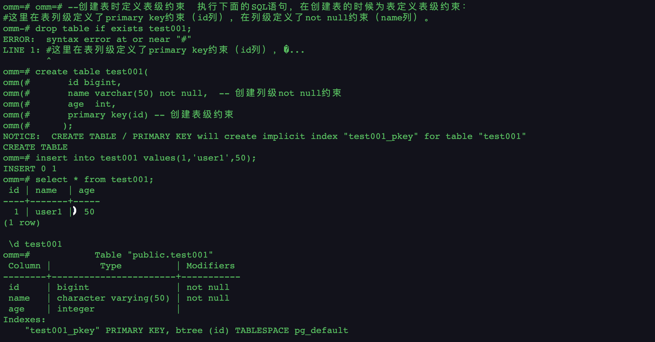 这一节主要定义表约束和字段约束,测试和查看约束是否生效,简单明了。
