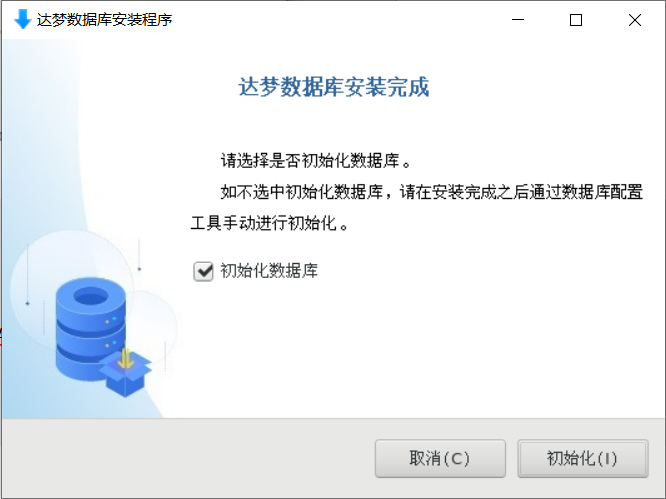 完成数据库软件安装后,界面会自动下一步到如下初始化数据库步骤,点击初始化。