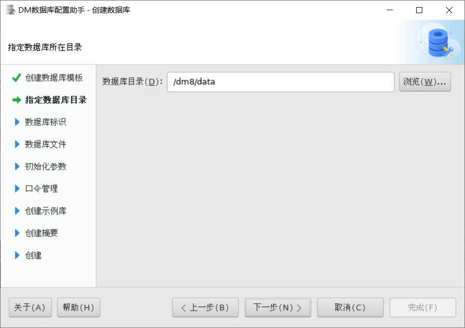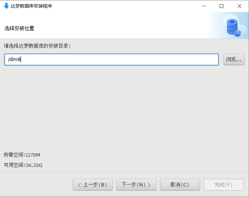 选择安装目录,此处设置为3.4小节创建的安装目录/dm8。