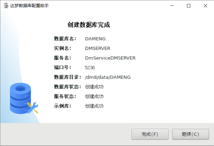 Created symlink from /etc/systemd/system/multi-user.target.wants/DmServiceDMSERVER.service to /usr/lib/systemd/system/DmServiceDMSERVER.service.