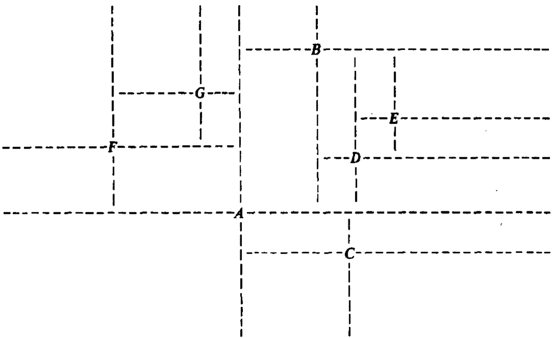 R-Trees源自论文《R-Trees: A Dynamic Index Structure For Spatial Searching》,下面的图也源自此论文: