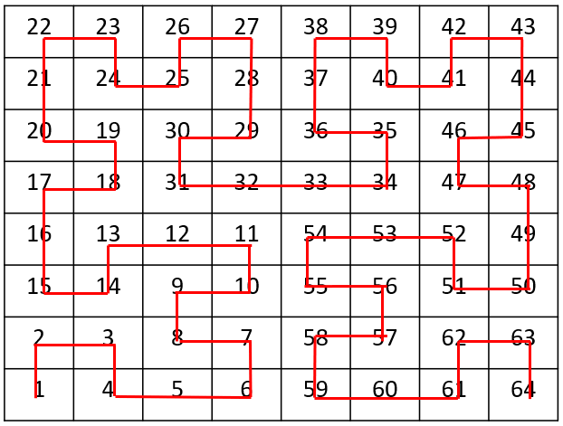 如果将一个完整的二维空间,分割成一个个大小相同的矩形,可以将Space Filling Curve简单理解为它是一种将所有的矩形区域用一条线”串”起来的方法,因”串”的方式不同,也就引申出了不同的Space Filling Curve算法。