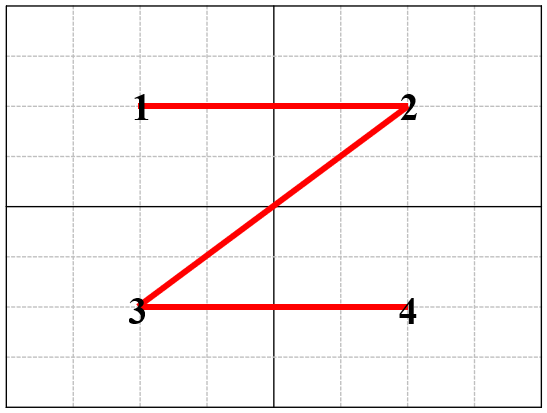 如果将整个区间划分成4个象限,第一轮迭代就是将这4个象限利用Z-Order曲线连接起来: