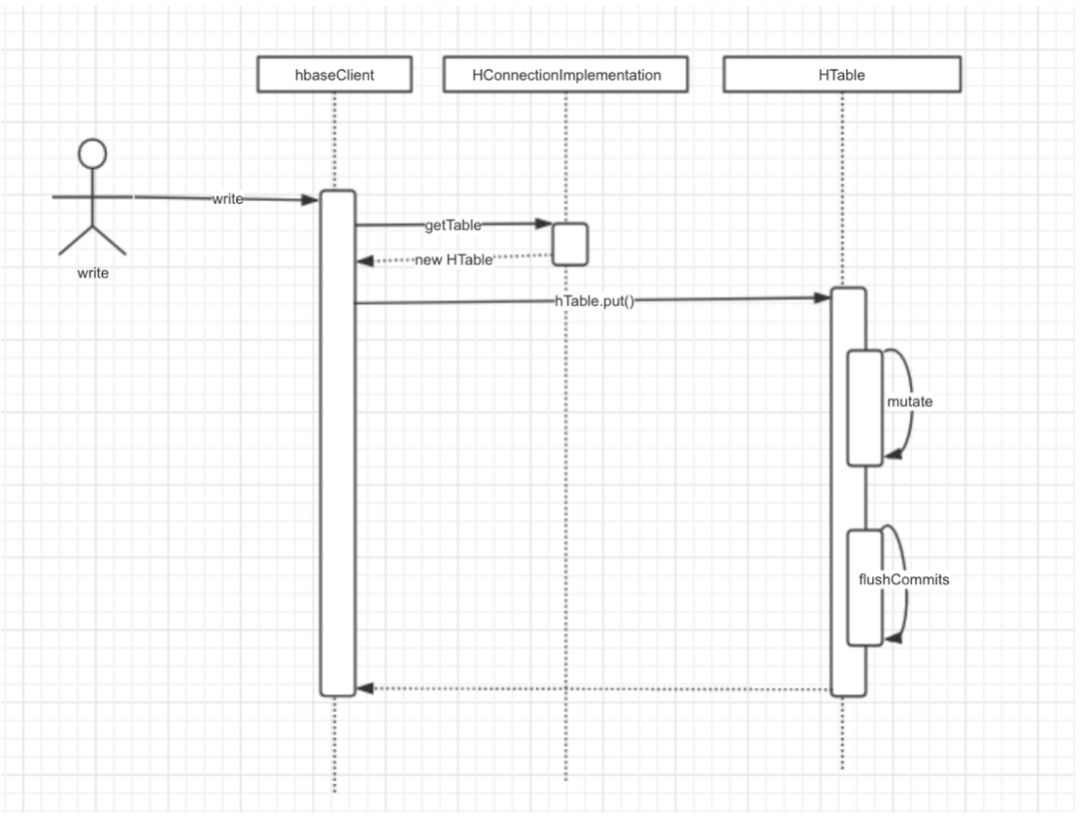 主要分为获取 HTable、mutate、flushCommits 三个部分: