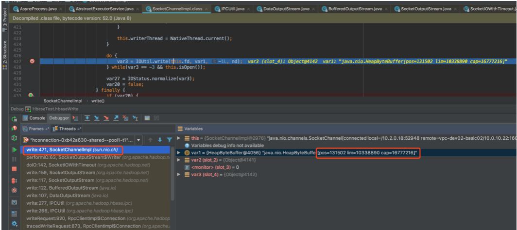 因此虽然调用 IOUtil.read() 也不会占用太大的堆外内存,而且由于 RpcClientImpl.Connection 线程接收完数据就消亡了,持有的堆外内存也会被 gc 回收。因此 HBase 读不会造成堆外内存泄露。