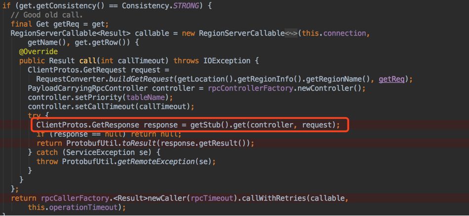 HTable.get() 通过匿名内部类的方式实现 RetryingCallable
