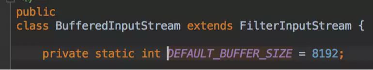 查看 BufferedInputStream 类默认一次读取的字节数为 8192: