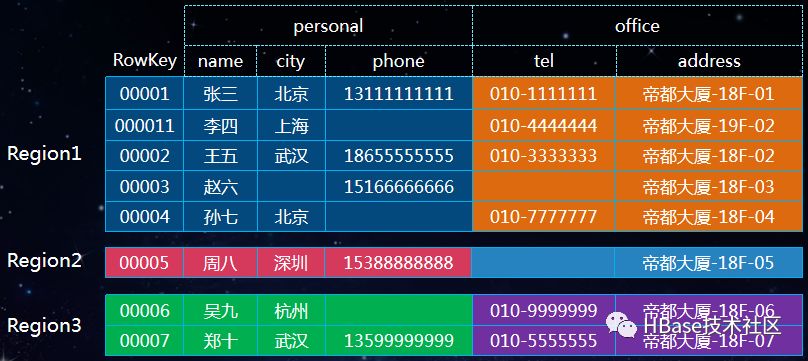 假如你有下列 rowkey,你表中每一个 region 对应字母表中每一个字母。 以 'a' 开头是同一个region, 'b'开头的是同一个region。在表中,所有以 'f'开头的都在同一个 region, 它们的 rowkey 像下面这样:
