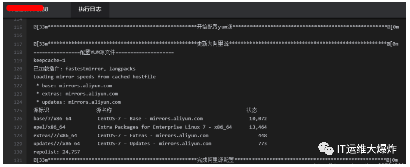 这里用蓝鲸平台调用系统初始化脚本输出日志如下