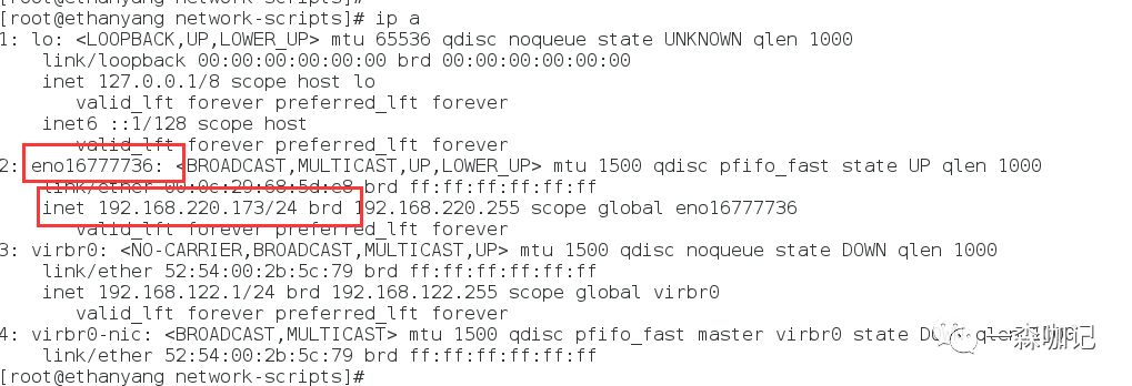 每个服务器网卡信息不一定是eno16777736 ,实际情况应该以ifconfig命令和ip addr命令查看的为准。