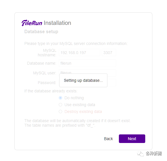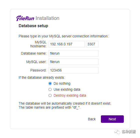 FR_DB_NAME | 数据库库名,默认为 filerun,保存不变 |